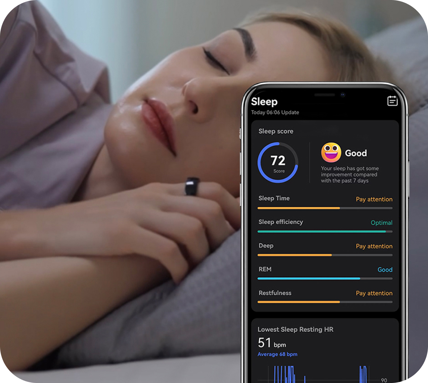 Experience more accurate biometric data with ARKA-lighter, refined, and personalized. Get tailored advice from continuous 24/7 monitoring for the perfect sleep and activity tracking experience.